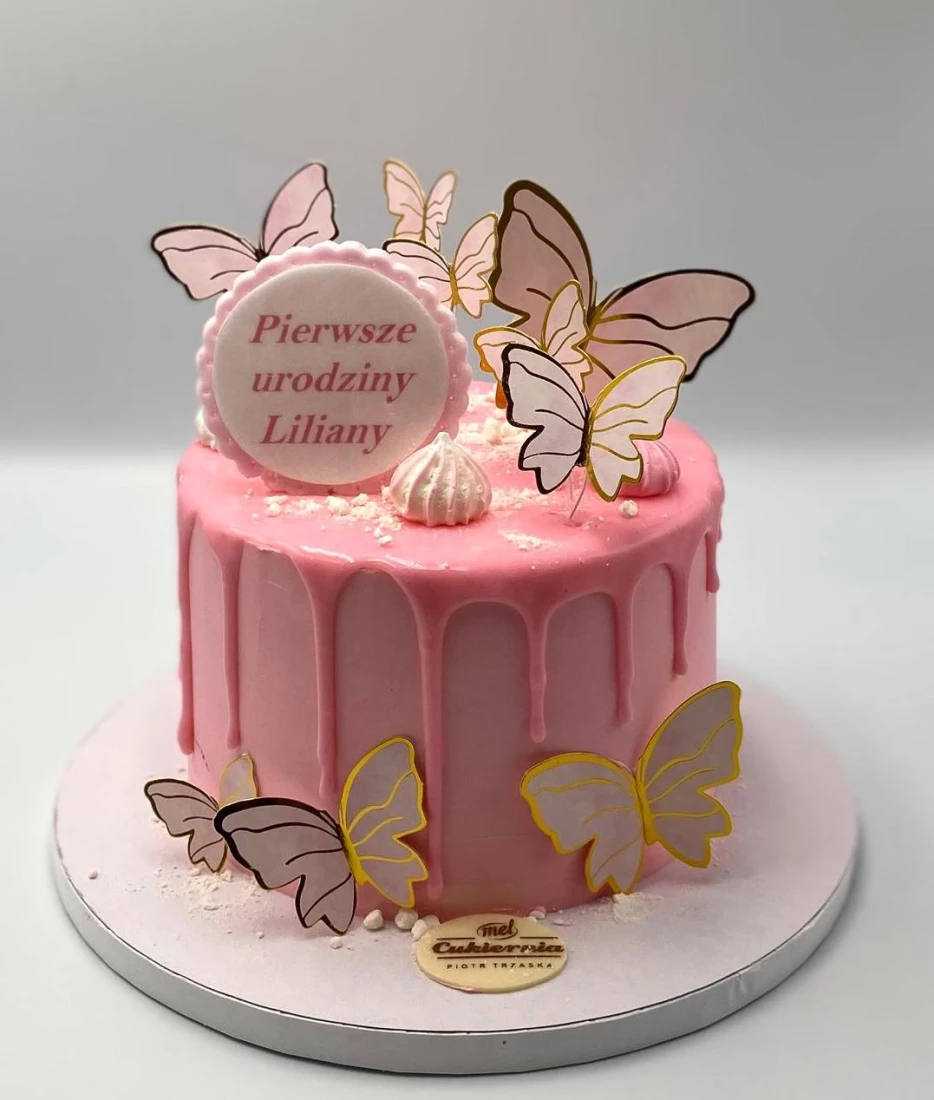 Możliwa jest zmiana koloru tortu, polewy oraz motylków (po wcześniejszym ustaleniu).